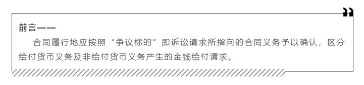其中,主要争议发生在对“争议标的”的理解上。根据刊登在2015年8月27日《人民法院报》第五版以高民智名义发表的关于民诉法解释中有关管辖若干问题的理解与适用》一文观点,“争议标的”指当事人诉讼请求所指向的合同义务内容,合同履行地即合同义务的履行地。