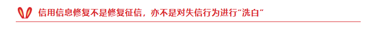 信用信息修复仅为移除或终止公示失信信息,但并不达到“失信”污点的消除效果,切勿轻信网传可以“修复征信”的谣言。为避免不必要的诉累,及可能对个人或公司的声誉和经济造成更大的损失,民商事活动仍应遵守法律法规及诚实信用等原则,以营造良好规范的商业交易氛围。